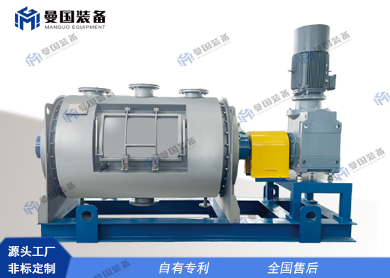 干燥機(jī)筒體設(shè)置夾套和保溫,當(dāng)含一定水分的物料進(jìn)入設(shè)備后,設(shè)備動(dòng)部件運(yùn)轉(zhuǎn)帶動(dòng)主軸上安裝的多組錯(cuò)位犁刀攪拌器以及筒體兩側(cè)板位置設(shè)置的旋轉(zhuǎn)刮板運(yùn)轉(zhuǎn),使筒內(nèi)物料產(chǎn)生不間斷漩渦離心力,不斷重疊翻轉(zhuǎn),同時(shí)在結(jié)構(gòu)上避免攪拌死角問題。查看更多 + -